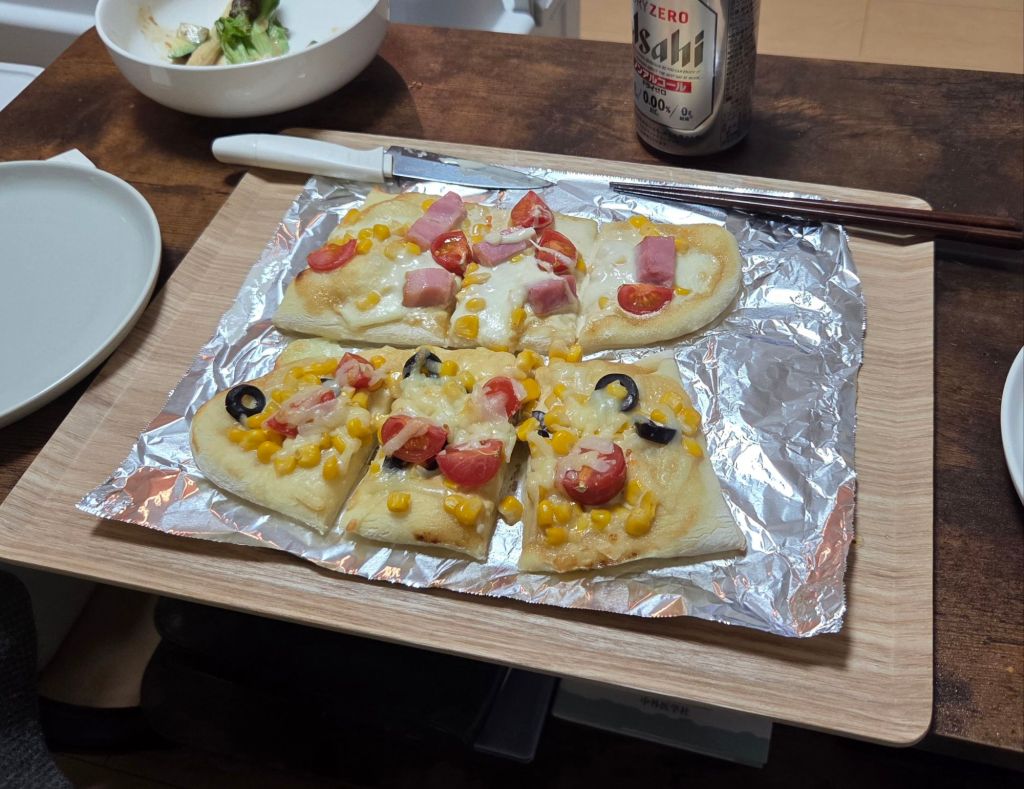 しばらく前にオーブンレンジ買ったけどオーブン機能ほとんど使ってなかったから半ば無理やり作ってみた(ピザ作りたくて300℃出せるオーブンにこだわったしね)。ちゃんと美味しい。次はマヨコーンの味をもっと甘くしたり、耳をカリカリにしてチーズがグツグツいうくらいまで熱してみようかな。また作ろう。